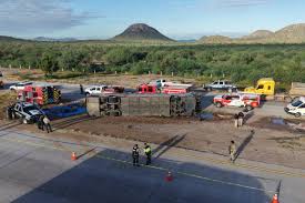 Conductor dormido, posible causa de volcamiento de autobús en la carretera Hermosillo-Guaymas, choferes huyeron del lugar