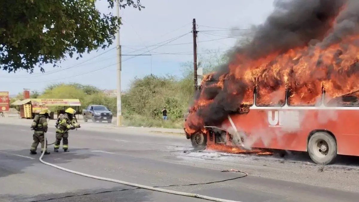 Incendio consume camión del transporte público en Hermosillo